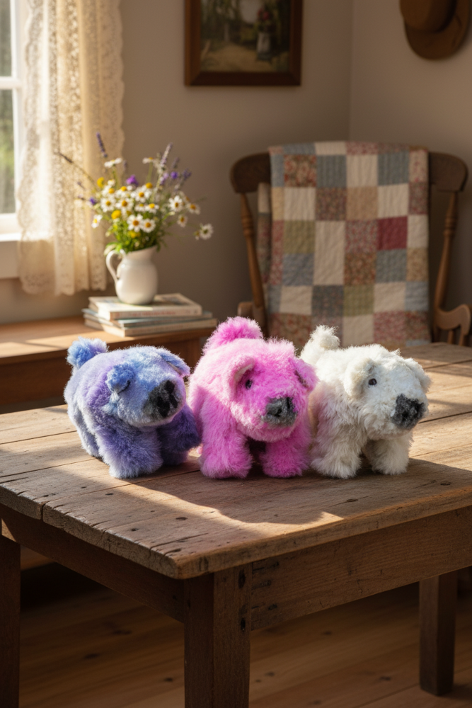 Disse charmerende små grise er håndlavet af blød alpacauld – hver enkelt med sit eget unikke udtryk.
