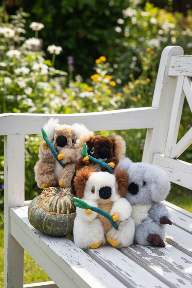 Denne charmerende koala bamse er håndlavet af den blødeste, naturlige alpacauld.