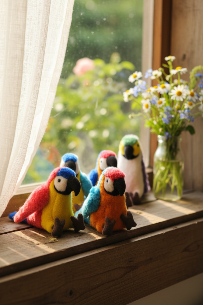 Håndlavet papegøjebamse i blød alpacauld 🦜