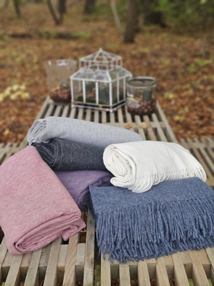 Plaiden er vævet i en blød og varm blanding af alpaca og uld, som giver en luksuriøs følelse og gør den perfekt til både sofaen, sengen eller de kølige aftener på terrassen.